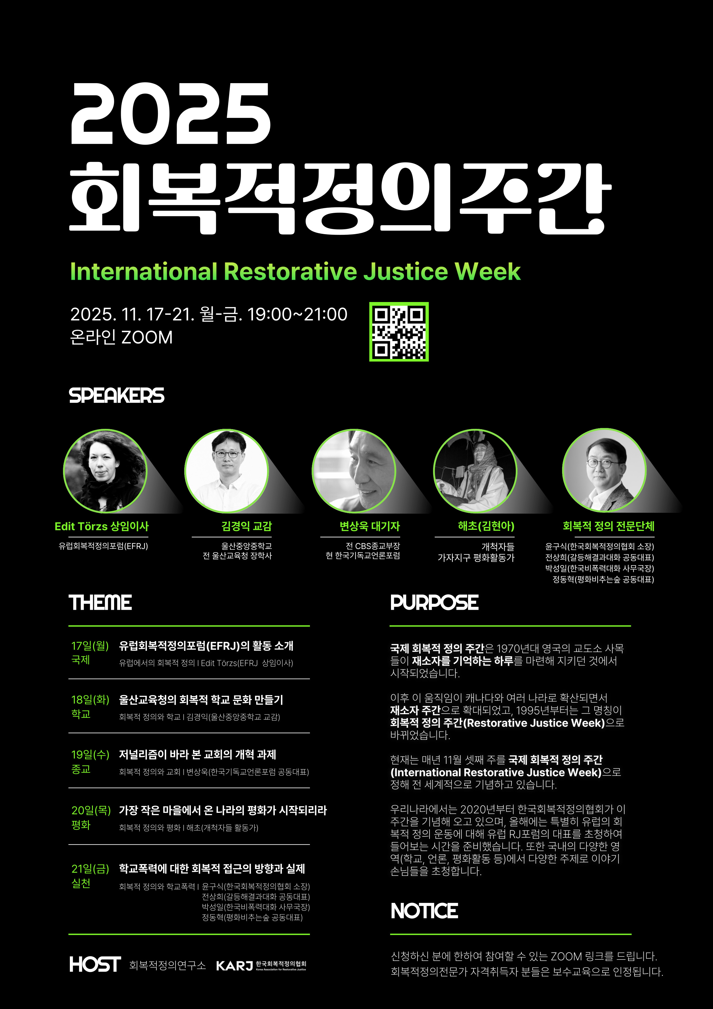 🟢2025 회복적정의주간 행사가 열립니다!🟢 International Restorative Justice Week
