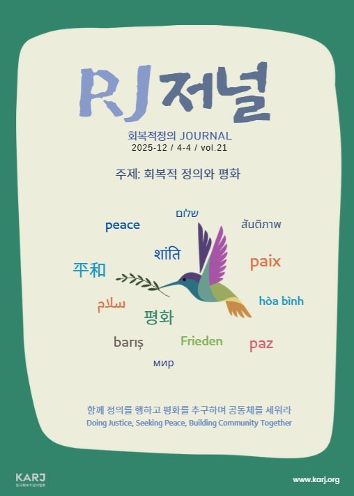 회복적 정의를 이야기하다 보면 자연스럽게 ‘회복’과 ‘평화’가 맞닿아 있다는 생각을 하게 됩니다. 때로 평화는 첨예한 갈등 현장에서 막연한 희망처럼 느껴지기도 하고, 너무 거창하거나 이상적인 담론으로 치부되기도 합니다. 하지만 이번 저널에서는 그 평화를 우리의 삶과 관계 속에서 바라보면서 내면의 평화를 통한 개인의 회복, 관계 회복을 통한 타자와의 평화, 이웃의 아픔에 동참하는 평화의 여정, 그것을 통해 경험하는 인류애의 회복을 이야기하려고 합니다.