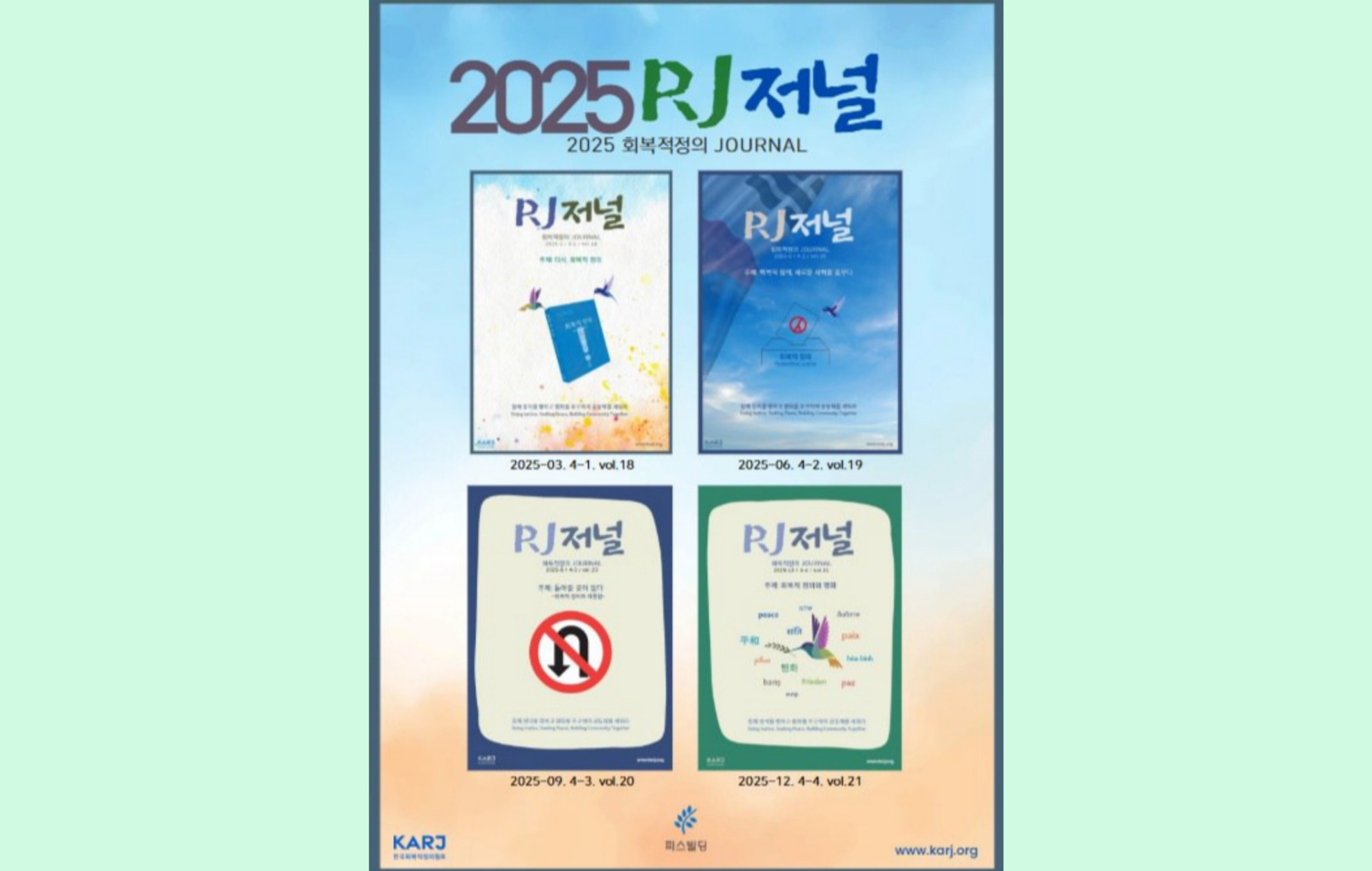 2025년 한 해 동안 함께 나누었던 깊이 있는 이야기들을 한 권의 책으로 엮었습니다. 총 4회 발간된 RJ 저널을 통합 편집하여, 소장을 원하시는 회원님들을 위해 PDF 및 인쇄용 자료로 정성껏 준비했습니다. 늘 협회의 목소리에 귀 기울여주시는 독자분들께 이 합본호가 의미 있는 감사의 선물이 되기를 바랍니다.